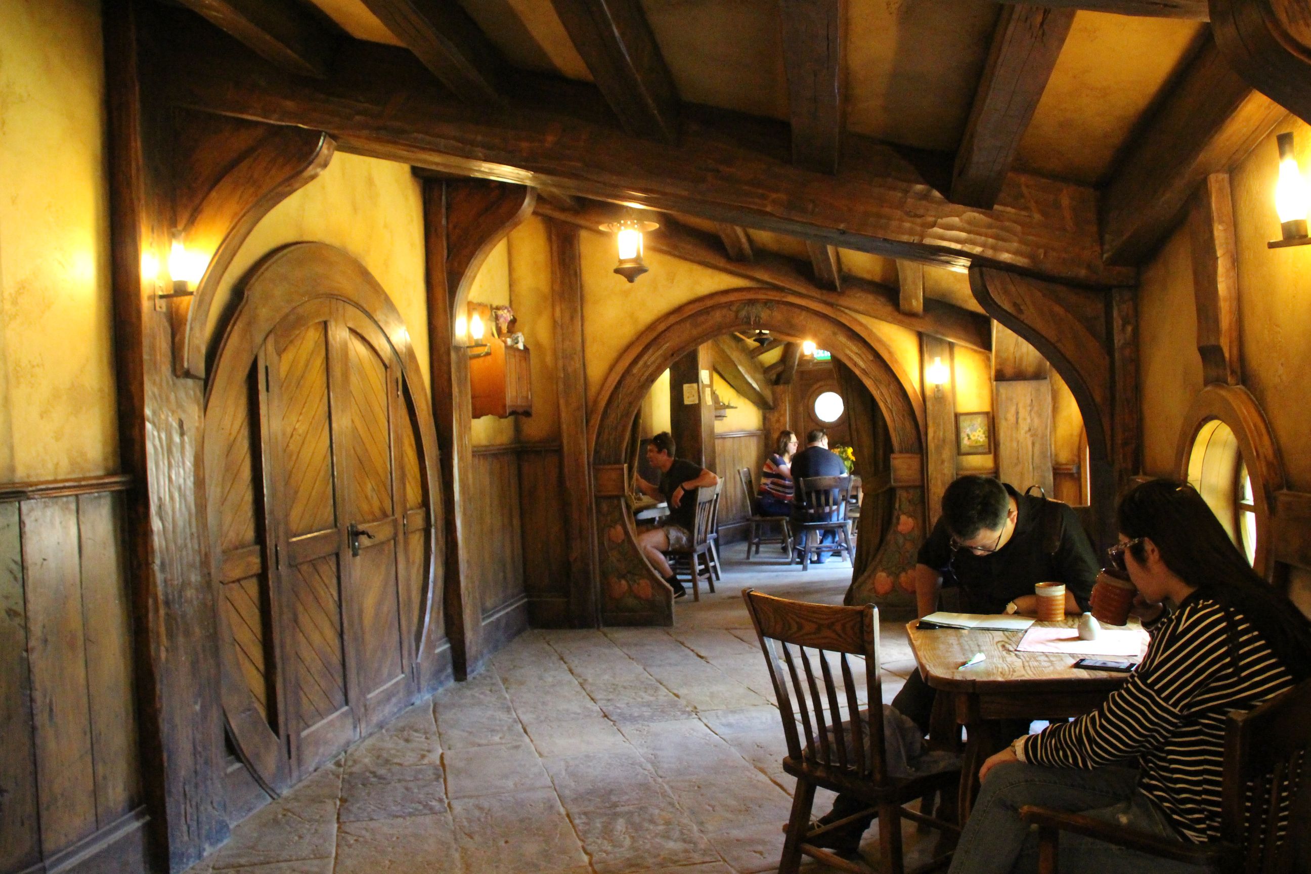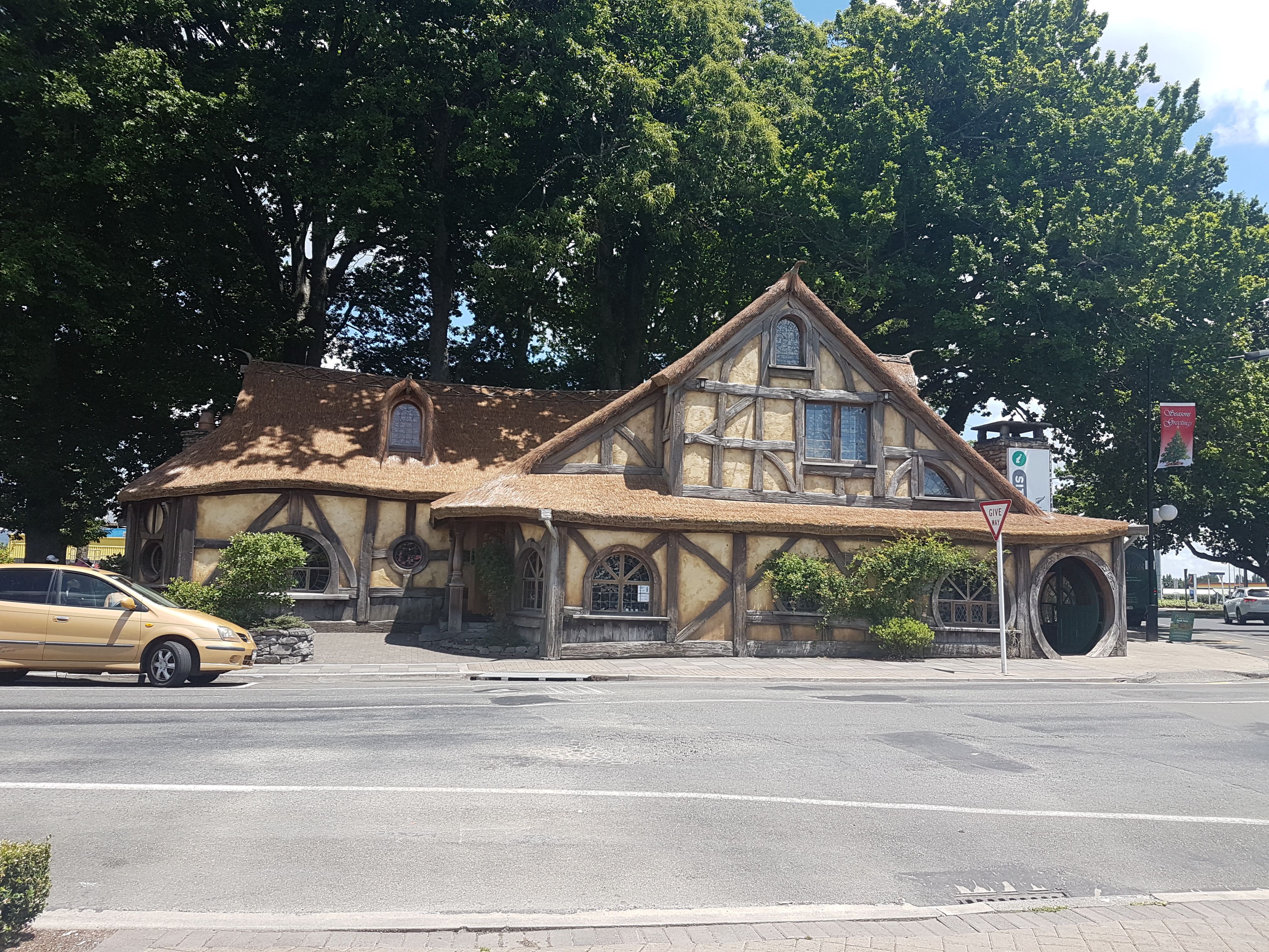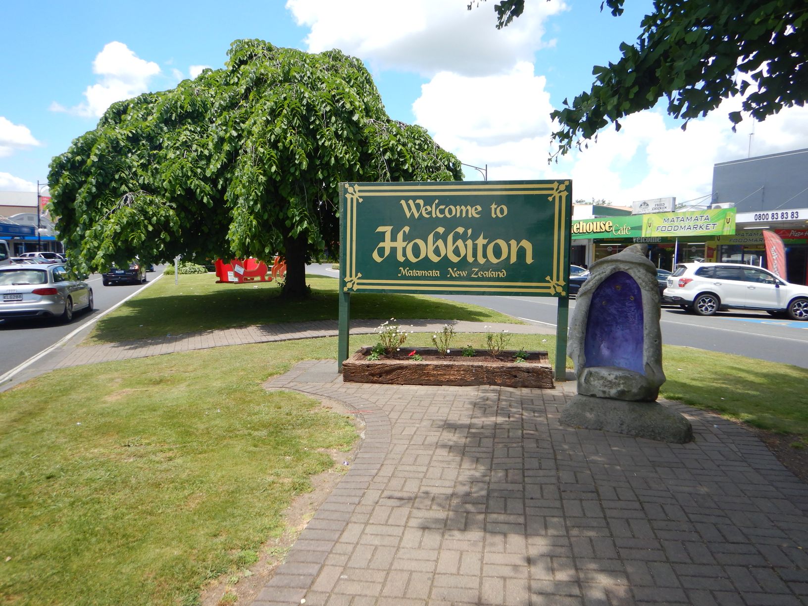 Mit dem Schulbus ging es früh am Sonntagmorgen los ins zweieinhalb Stunden entfernte Matamata. Schon wenn man in den Ort hineinfährt wird einem klar, dass man nun in Mittelerde angekommen ist. Das Informationscenter ist wie eine Hobbithöhle gestaltet, diverse künstlerische Malereien zeigen unmissverständlich, wo man sich gerade befindet und ein Schild «Welcome to Hobbiton» begrüsst jeden Besucher in Mittelerde.