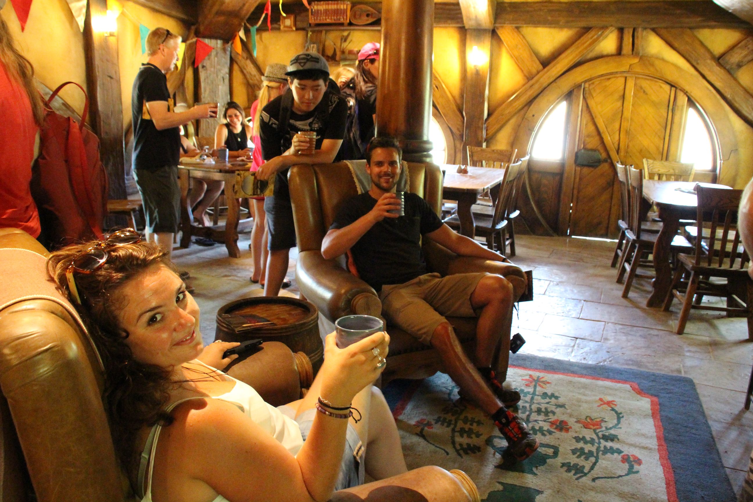 Alles in Allem war es sehr cool den Drehort der Hobbit- und Herr der Ringe Filme zu sehen. Wie zu erwarten war es extrem touristig und ich fand es ein bisschen schade, dass wir immer in der Gruppe bleiben mussten. Man konnte nicht selber herumlaufen, wie und wo man wollte und die ganze Führung war an einen strikten Zeitplan gebunden. Auch wenn es auf den Fotos nicht so aussieht waren überall extrem viele Leute unterwegs. Dennoch fühlte sich mein innerer Hobbit sofort wie Zuhause und wollte am liebsten gar nicht mehr weg. Nach der Führung durch das Set bekamen wir im Grünen Drachen ein waschechtes Hobbit-Bier zu trinken und konnten uns auch noch ganz im Hobbit-Style einkleiden. Und so ging ein ereignisreicher Tag zu Ende.