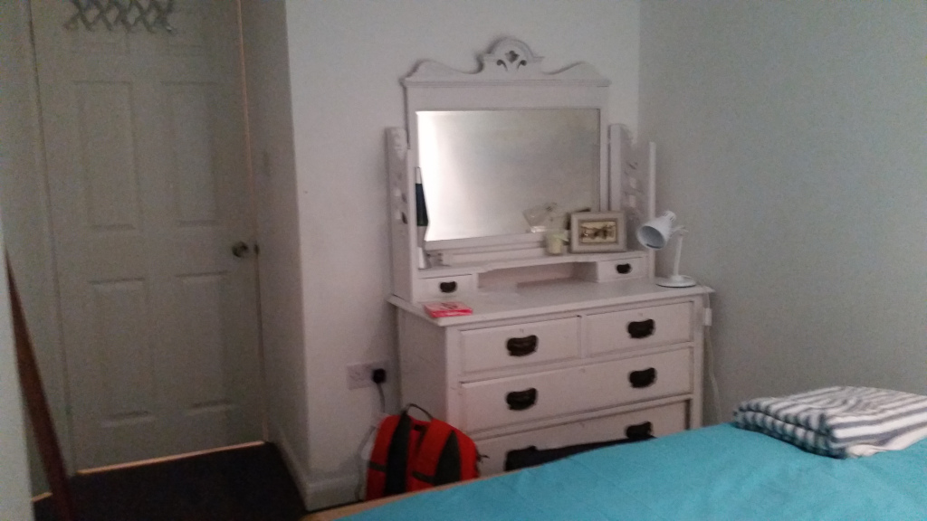 Doch auch Darcy und John kamen kurze Zeit später nach Hause und dann gab es auch schon Abendessen. Rostbeef, Potatetos und Vegetables. Mal abgesehen davon, dass das Rostbeef ein bisschen trocken war, war das Essen in Ordnung. Ciara zeigte mir dann auch noch mein Zimmer und mein persönliches Bad. Der Raum in dem ich die nächsten zwei Wochen wohnen werde, ist nicht sehr gross, ausser einem Doppelbett und einer Kommode mit Spiegel hat nicht sehr viel Platz darin, doch es ist gemütlich hier. Allerdings ein bisschen kühl. Somit bewahrheitete sich die Voraussage unseres Englischlehrers, der uns warnte, dass es in den englischen Häusern im Vergleich zu Schweizerhäusern immer recht kalt ist. Nun bin ich froh, dass ich so viele warme Pullis mitgenommen habe.