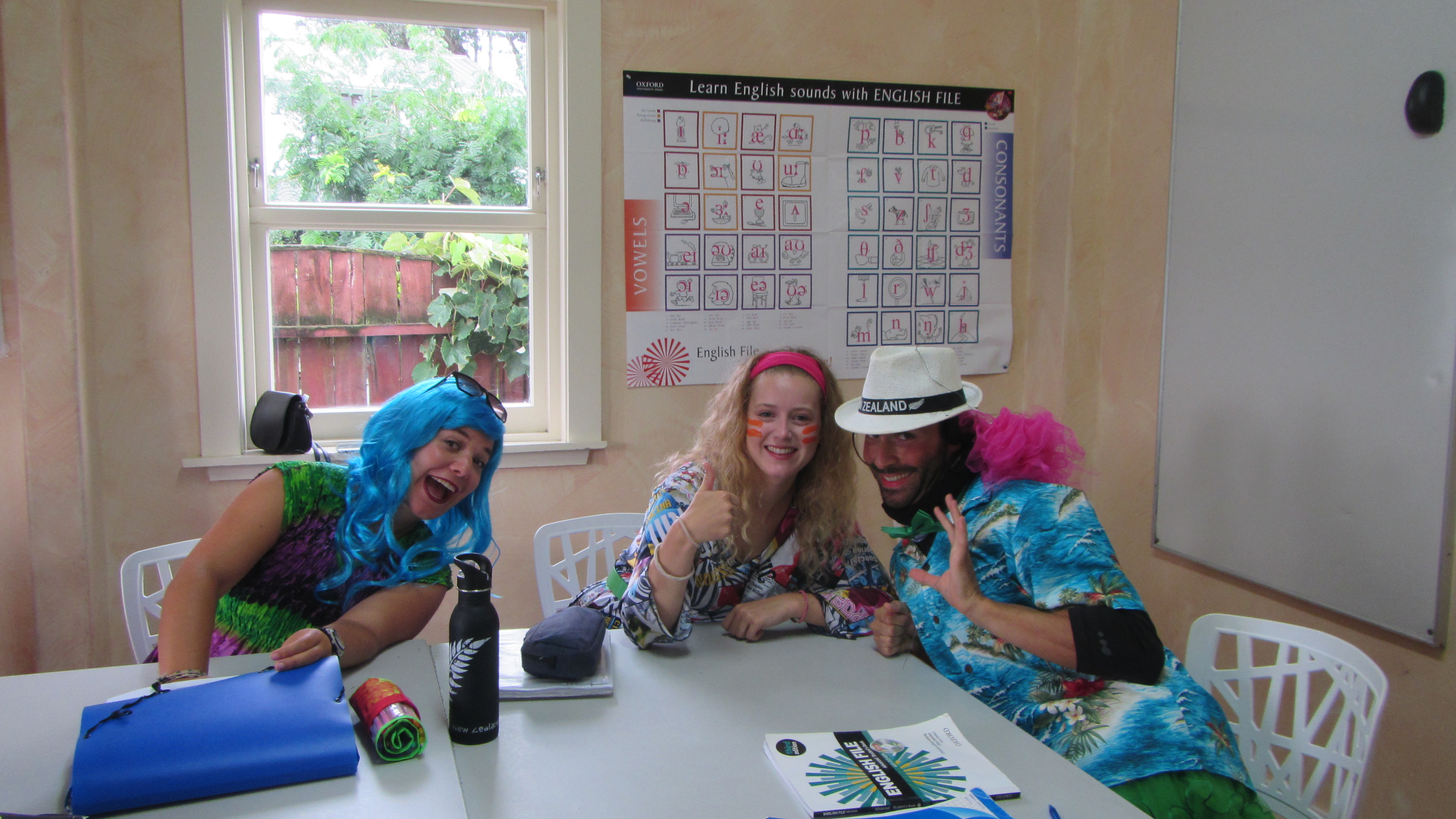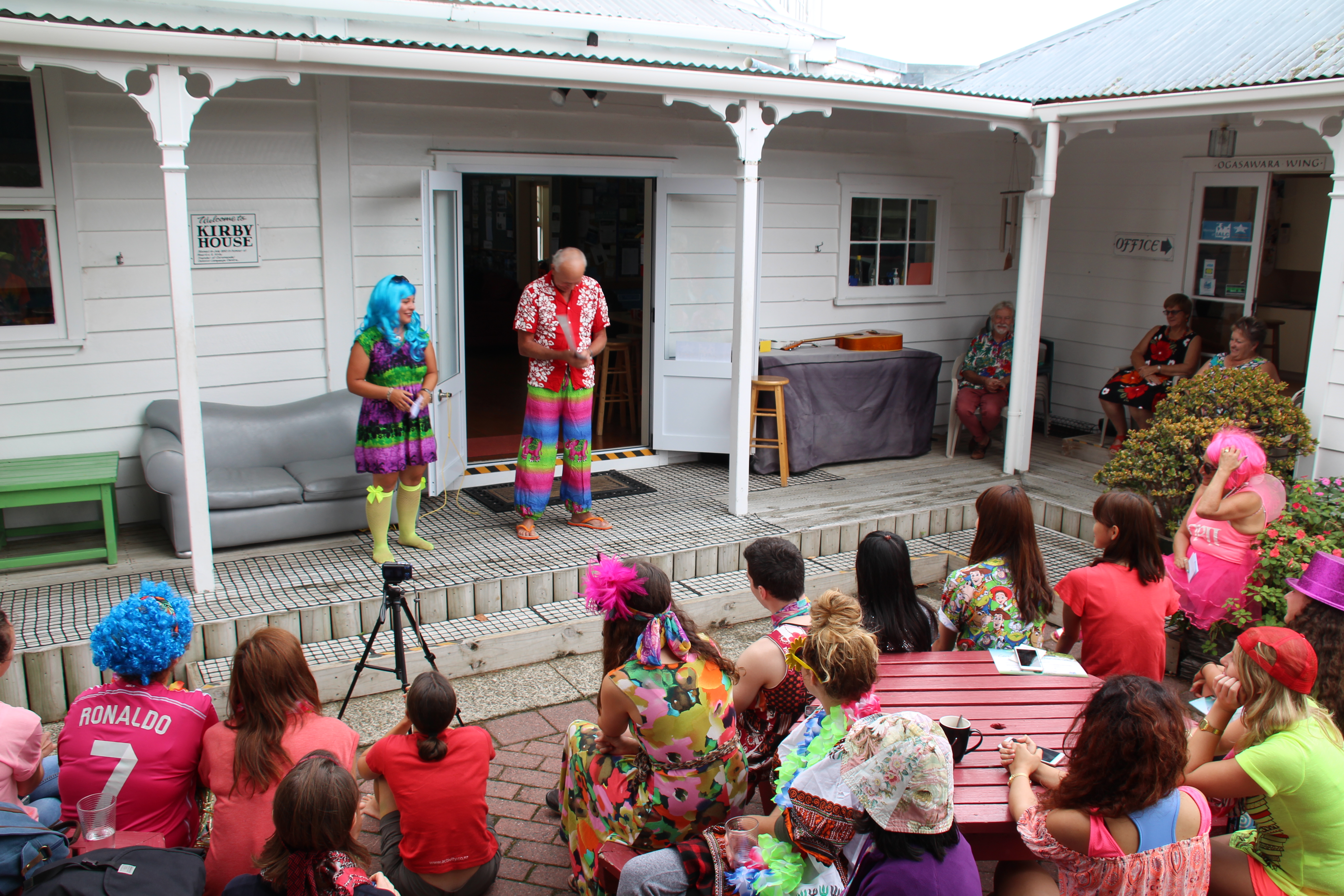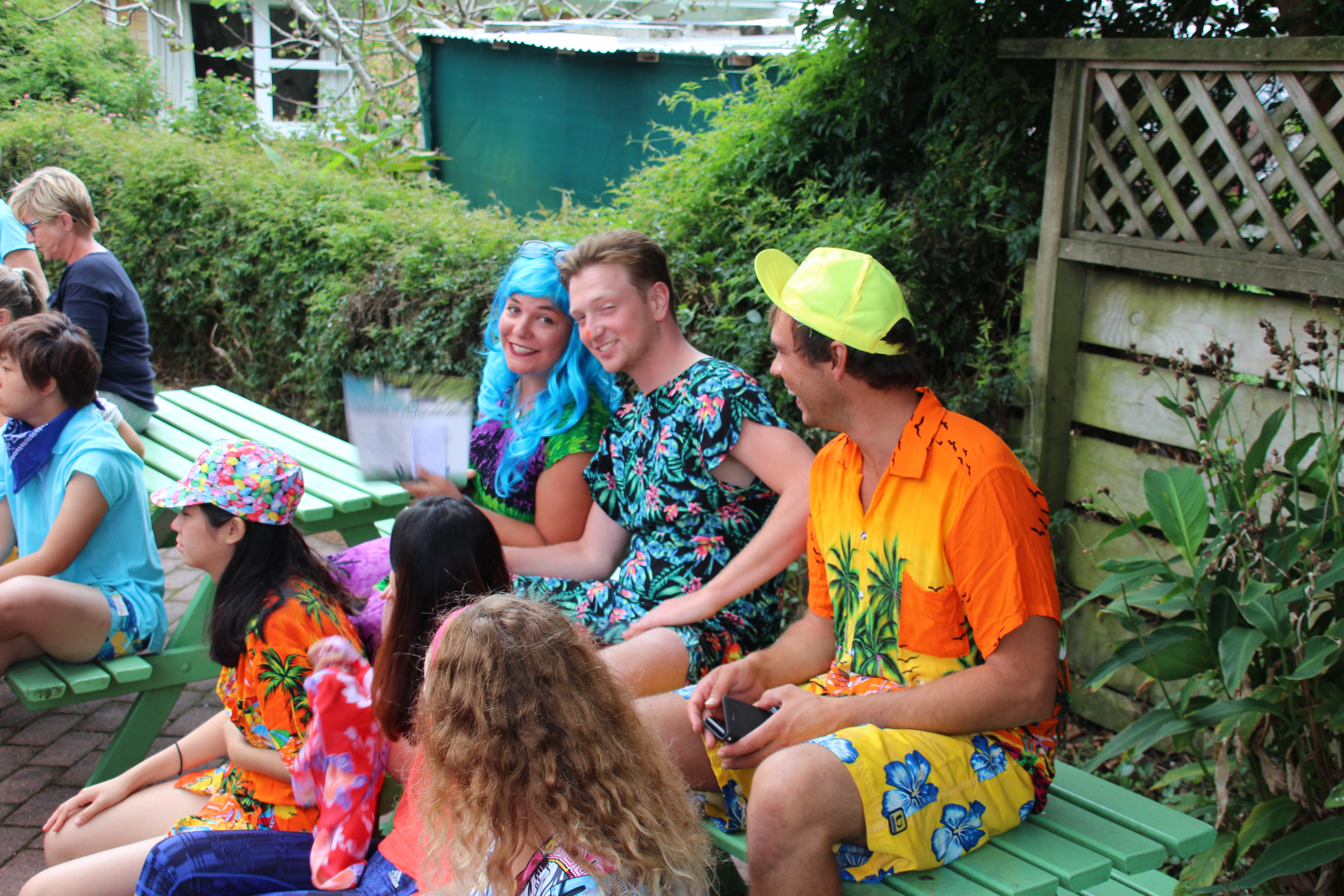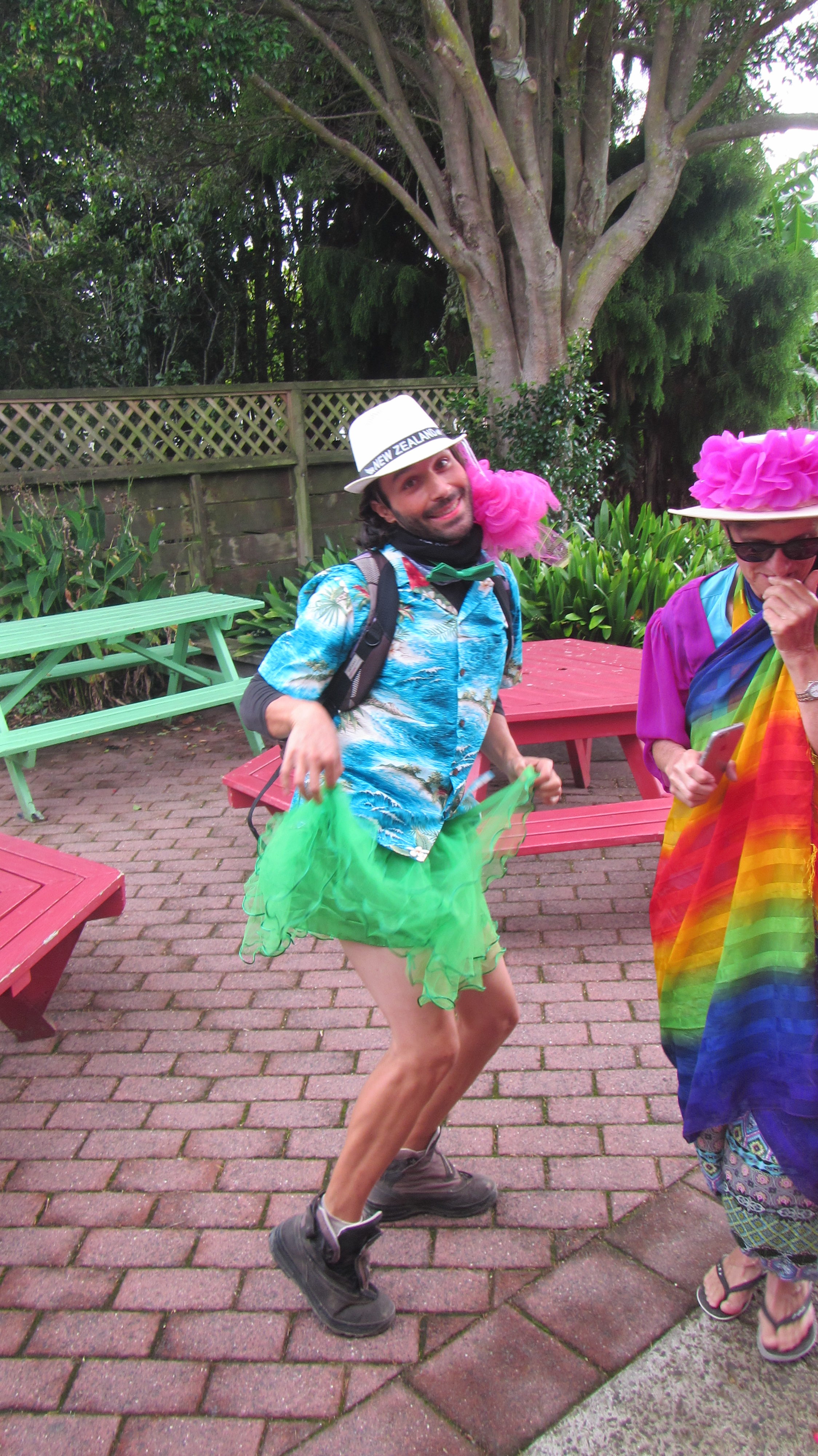 Der Freitag war jedoch nicht nur ein trauriger Tag, es war nämlich auch gleichzeitig mit meinem letzten Tag am COLC auch ein „Loud Shirt Day“ angesagt. Am Morgen verkleidete ich mich also passend mit meinem Loud Shirt Day Outfit und ging zur Schule. Loud Shirt Days sind immer besonders lustige Tage, da sich jeder vom Schulleiter bis zum 70 Jahre alten japanischen Mitschüler in ein farbenprächtiges, crazy und oft bad-taste mässiges Outfit schmeissen und dann so im Unterricht sitzen. Um 11 Uhr gibts dann die Parade, bei der eine externe Jury die besten Kostüme auswählt und schlussendlich einen Gewinner verkünden. Am Loud Shirt Day sieht man am COLC einfach alles, Männer in Kleidern und Highheels, farbenfrohe Perücken und verrückte Brillen, Hüte und andere Accessoires.
