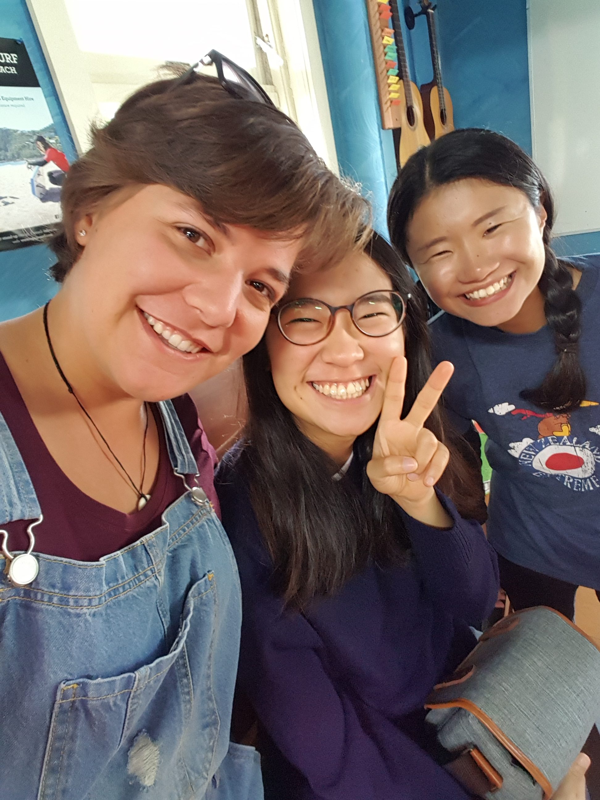 Wir erreichten Whitianga am späteren Abend und bezogen unser Zimmer in der Student Lodge. Anschliessend an ein grosses Hallo mit Irene, Tom, Estrella und Luis, machten wir uns auf den Weg zur Open Night. Ich war ein bisschen nervös, weil ich so halb eine Überraschung für Fa geplant hatte, aber nicht wusste, ob sie gelingen würde. Nunja, ich hätte nicht nervös sein müssen, denn die Überraschung war ein voller Erfolg. Fa flippte so richtig aus, als sie mich sah und erdrückte mich fast mit ihren Umarmungen. Wir hatten eine tolle Open Night, die ganz anders war als die Open Nights die ich bisher gekannt hatte, doch es waren auch nur noch etwa sieben Schüler an der Schule und deshalb war das ganze Feeling anders. Trotzdem fühlte ich mich sofort wieder wie zu Hause und auch mit den Schülern, die ich bisher nicht gekannt hatte, kam ich bestens zurecht. Am Freitagmorgen ging es dann auch nochmals zurück zur Schule, um die Speeches zu sehen und mit den Leuten Zeit zu verbringen. Am Freitagnachmittag dann, begann es zu regnen, es regnete wie aus Kübeln und sollte auch das ganze Wochenende nicht mehr aufhören. Am Freitagabend gingen wir in den Pub um Niels letzten Abend zu feiern und am Samstagmittag assen wir alle zusammen Thailändisch in einem Restaurant. Den Rest der Zeit verbrachten wir wetterbedingt mehr oder weniger drinnen in der Lodge. Am Sonntag nahm Julien den Bus zurück nach Auckland und ich ging zusammen mit Fa und Jiri ins Kino. Dabei überraschte Fa mich ihrerseits, da auch Aimi ins Kino kam, eine Japanerin, die ich immernoch auf Reisen geglaubt hatte. Am Montagmorgen ging ich noch einmal zur Schule, um mich von allen zu verabschieden, bevor ich mich auf die neunstündige Rückfahrt nach Wellington machte. Obwohl ich nicht in Whitianga nicht viel machen konnte, war es die beste Entscheidung zurück zu gehen, denn ich hatte „zu Hause“ schrecklich vermisst.