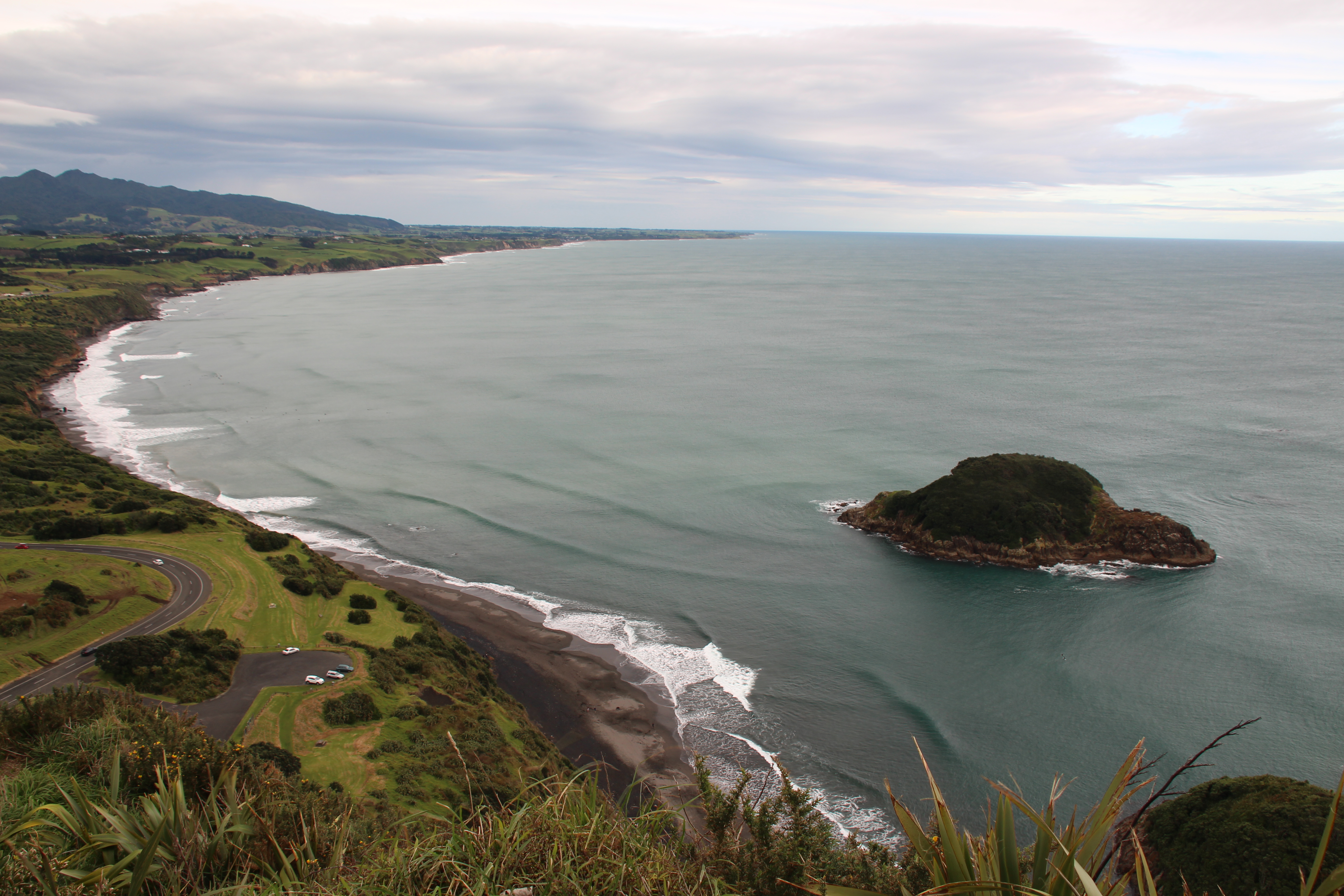 Am Wochenende darauf hatten Sandra und ich wieder grosse Pläne. Wir fuhren nämlich für ein Wochenende nach New Plymouth. Am Freitagabend, machten wir uns nach der Arbeit auf den Weg und fuhren mit nur einem Stop fürs Abendessen die vierstündige Strecke bis nach New Plymouth. Da es dann doch schon reichlich spät war, gingen wir direkt ins Bett. Am nächsten Morgen hatten wir eigentlich eine Wanderung am Mt. Taranaki (der manchmal auch Mt. Egmond genannt wird) geplant. Leider ist der Berg nicht nur für seine Schönheit berühmt, aber auch für die Tatsache, dass er oft überhaupt nicht zu sehen ist. Und so war es auch bei uns. Obwohl es eigentlich ein ganz schöner Tag war, war der Berg in dicken Nebel gehüllt und tiefliegende Wolken hatten sich um die Spitze gesammelt. Zwar wollten wir wirklich gerne wandern gehen, doch mit dem Ausblick auf eine 6 stündige Wanderung im Nebel und potenziellen Regengüssen, mit 0,00 Aussicht am Berg, verging uns die Lust darauf recht schnell wieder. Stattdessen wandten wir uns vom Berg ab und fuhren in die entgegengesetzte Richtung, in dem verzweifelten Versuch den Wolken davonzufahren. Dies gelang uns ein Stück weit auch, sodass der restliche Tag recht gutes Wetter war.