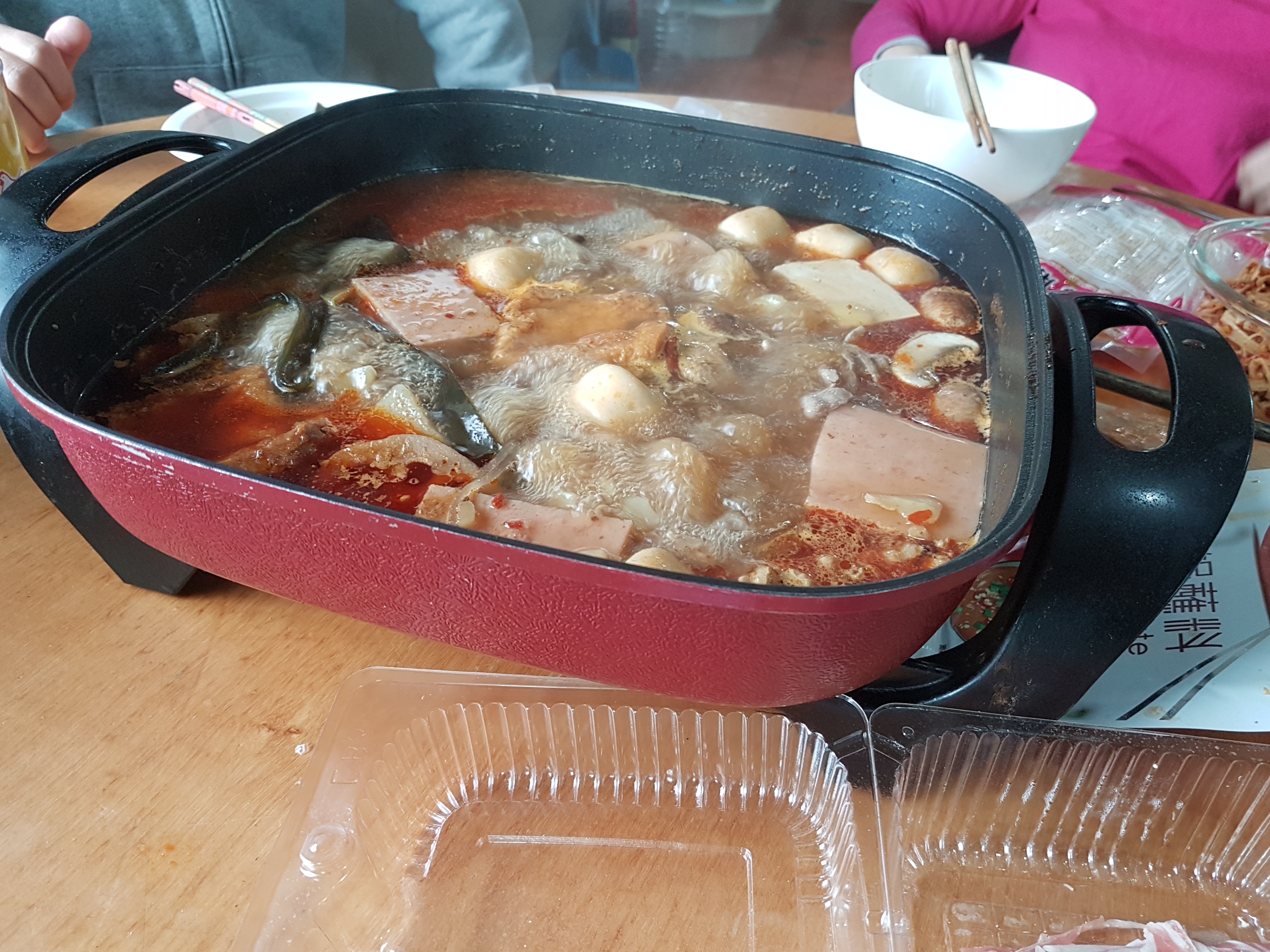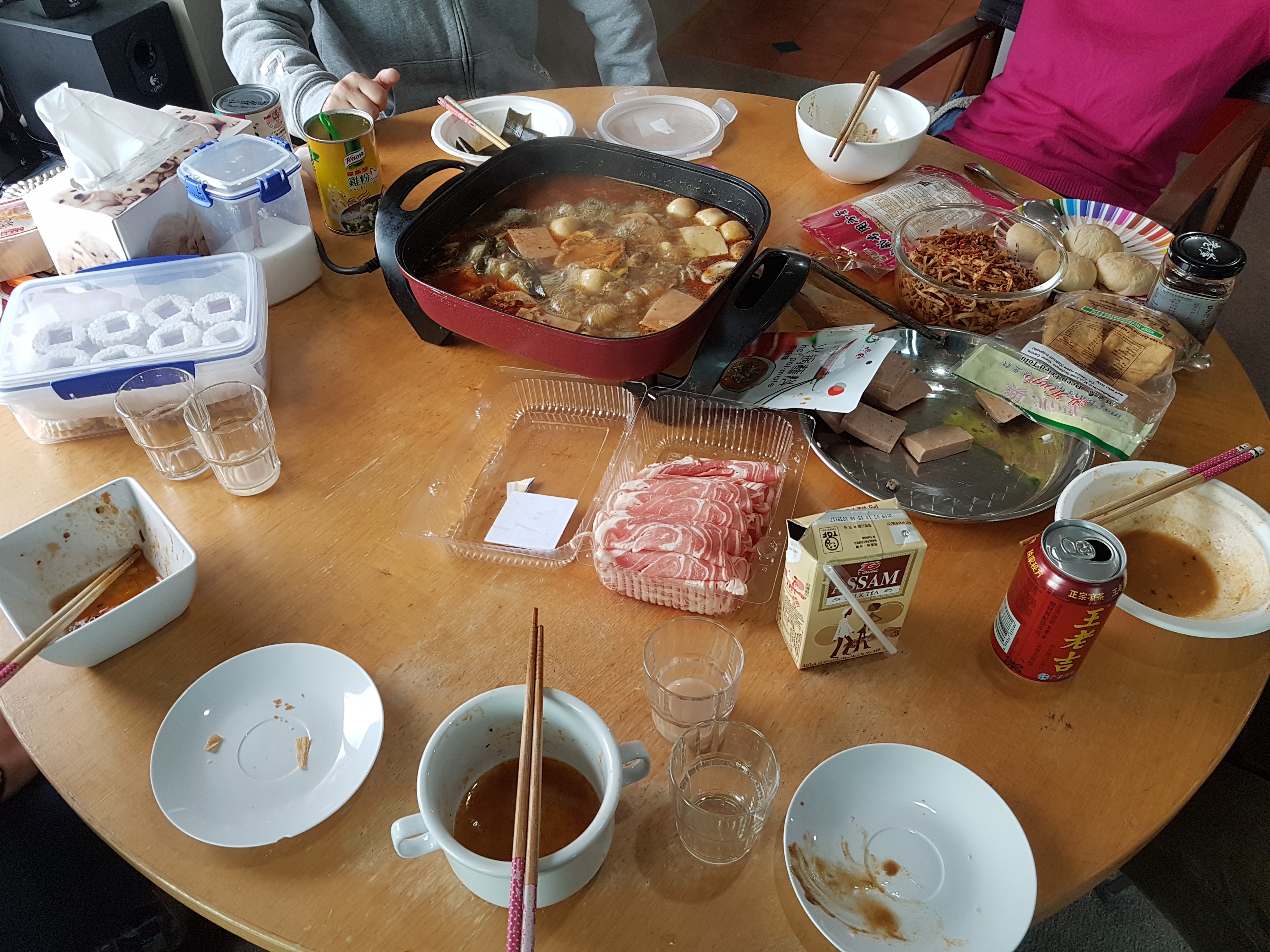 Am Dienstag waren wir bei Jenny eingeladen, einer Chinesin aus unserer Klasse, die uns auf einen typischen chinesischen Hot Pot eingeladen hatte. Dies ist eine Art Fondue Chinoise nur mit etwas speziellen Beilagen. Nebst Rindfleisch gab es da auch Seaweed, Fischkugeln, eine Art Glasnudeln und jede Menge Tofu in diversesten Formen zur Auswahl. Wir assen uns tapfer durch alle Dinge, die uns aufgetischt wurden und versuchten uns nicht anmerken zu lassen, wie scharf die Suppe für uns war. Für Sandra war das Ganze noch eine spezielle Herausforderung, sie ist nämlich Vegetarierin.