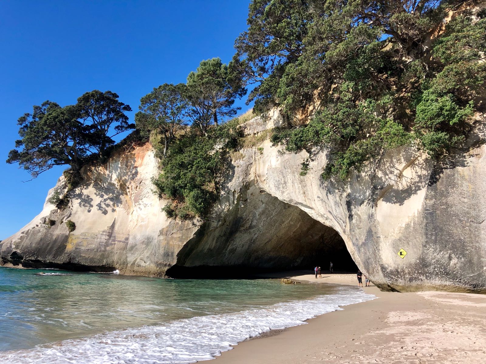 Am nächsten Tag machen wir uns dann bei strahlendem Sonnenschein auf den Weg zu den bekanntesten Sights. Dies beinhaltete zum Einen Cathedral Cove und Hot Water Beach. Hier zeigte sich nun der absolute Vorteil, vom Reisen im Winter: Obwohl es ein wunderschönes Wetter war, waren kaum Leute an der Cove oder am Beach – und das ist im Sommer undenkbar. So nutzten wir die Gelegenheit ein paar touristenfreie Fotos zu schiessen. Es war ein mega warmer Tag und nach einem Glacé in Kuoatunu genossen wir die Zeit an Otama Beach bevor wir uns nach dem Sonnenuntergang eine Pizza bei Lukes Kitchen genehmigten. Wir beendeten den Abend im Pub von Whitianga wo wir uns in Billiard versuchten. Und als ob das Wochenende nicht noch besser hätte werden können, textete Fa mir, dass sie soeben aus Rotorua zurückgekommen seien. Wir verabredeten uns fürs Frühstück am nächsten Morgen und das machte mein Wochenende perfekt.