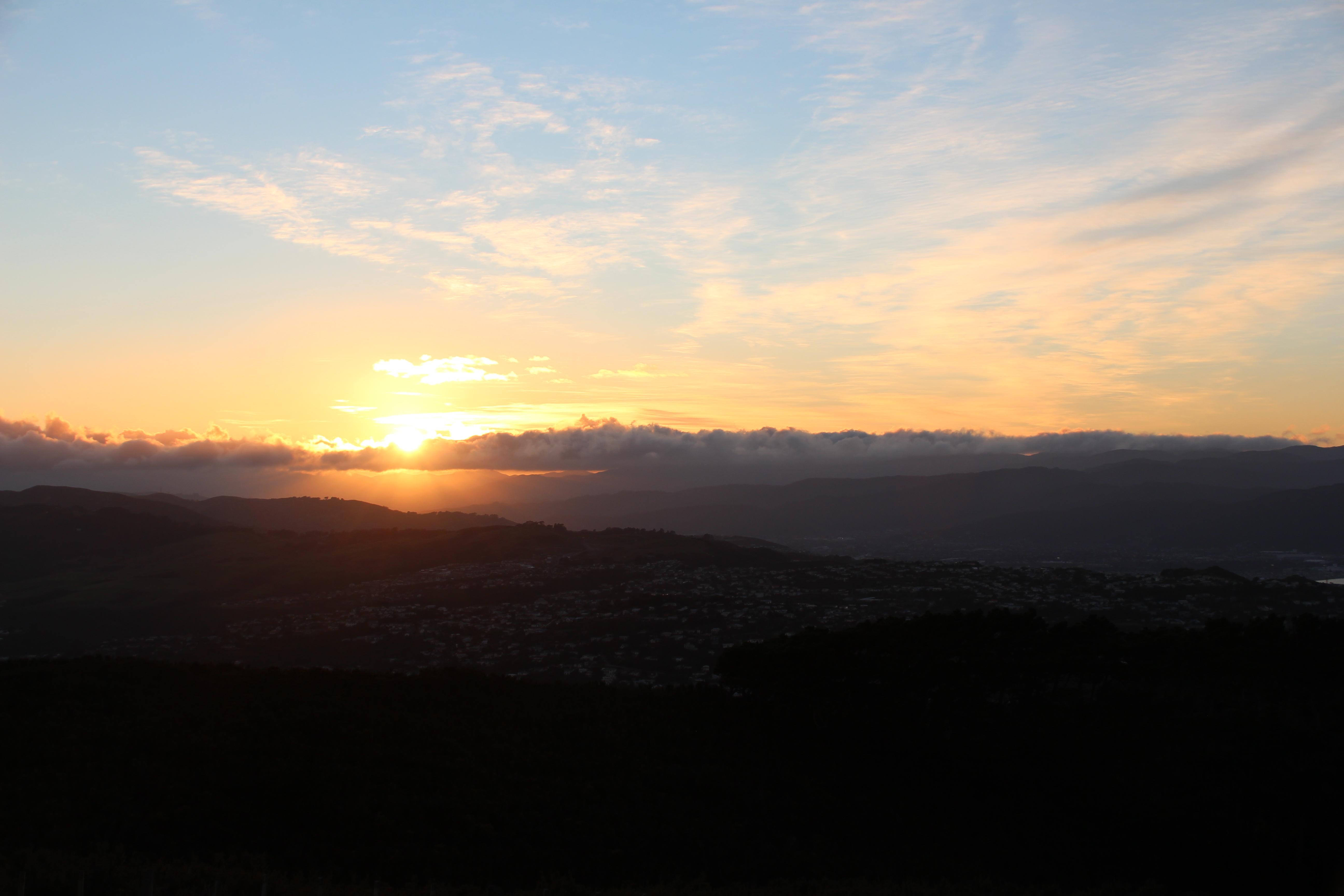 An meinem letzten Wochenende war am Samstag die Mondfinsternis, die bei uns gerade vor Sonnenaufgang stattfand, Jane und ich beschlossen daher auf den Mt. Kaukau raufzulaufen, um beides zu sehen. Leider, war es schon ein bisschen sehr hell und etwas zu wolkig, sodass wir den Mond fast gar nicht mehr sahen, dafür einen umso schöneren Sonnenaufgang.
