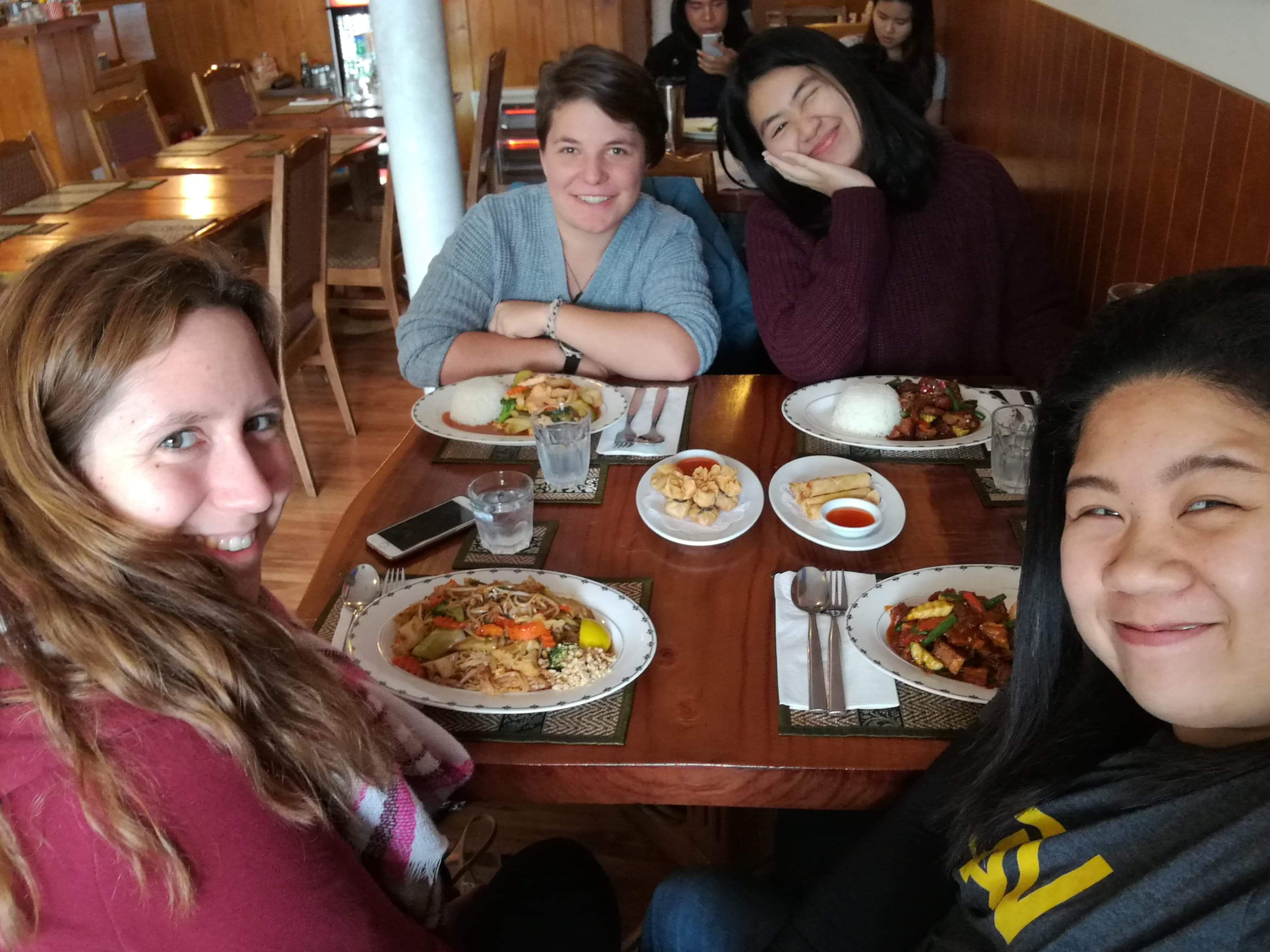 Das war aber noch nicht das einzige kulinarische Erlebnis. Am Mittwoch trafen wir uns dann mit Lena zum Frühstück, und am Freitagmittag mit unseren zwei Freunden aus Thailand zum Lunch. Freitagabend jedoch übertrafen wir uns selber, es war Sandras letzter Abend und wir wollten noch einmal all unsere Lieblingsdinge essen gehen. Alles begann mit Pizza in der Pizzeria Napoli, das anschliessende Dessert waren Waffeln vom Waffelstand, und gescheiterweise hätten wir dann aufgehört. Trotzdem entschieden wir uns noch auf ein Frozen Yoghurt zu gehen, und weil uns nach all dem Süssen wieder nach Salzig war, gabs dann im Anschluss noch Pommes bei Mamma Brown. Man war uns allen schlecht danach. Naja, man muss halt auch so seine Erfahrungen machen… ^^