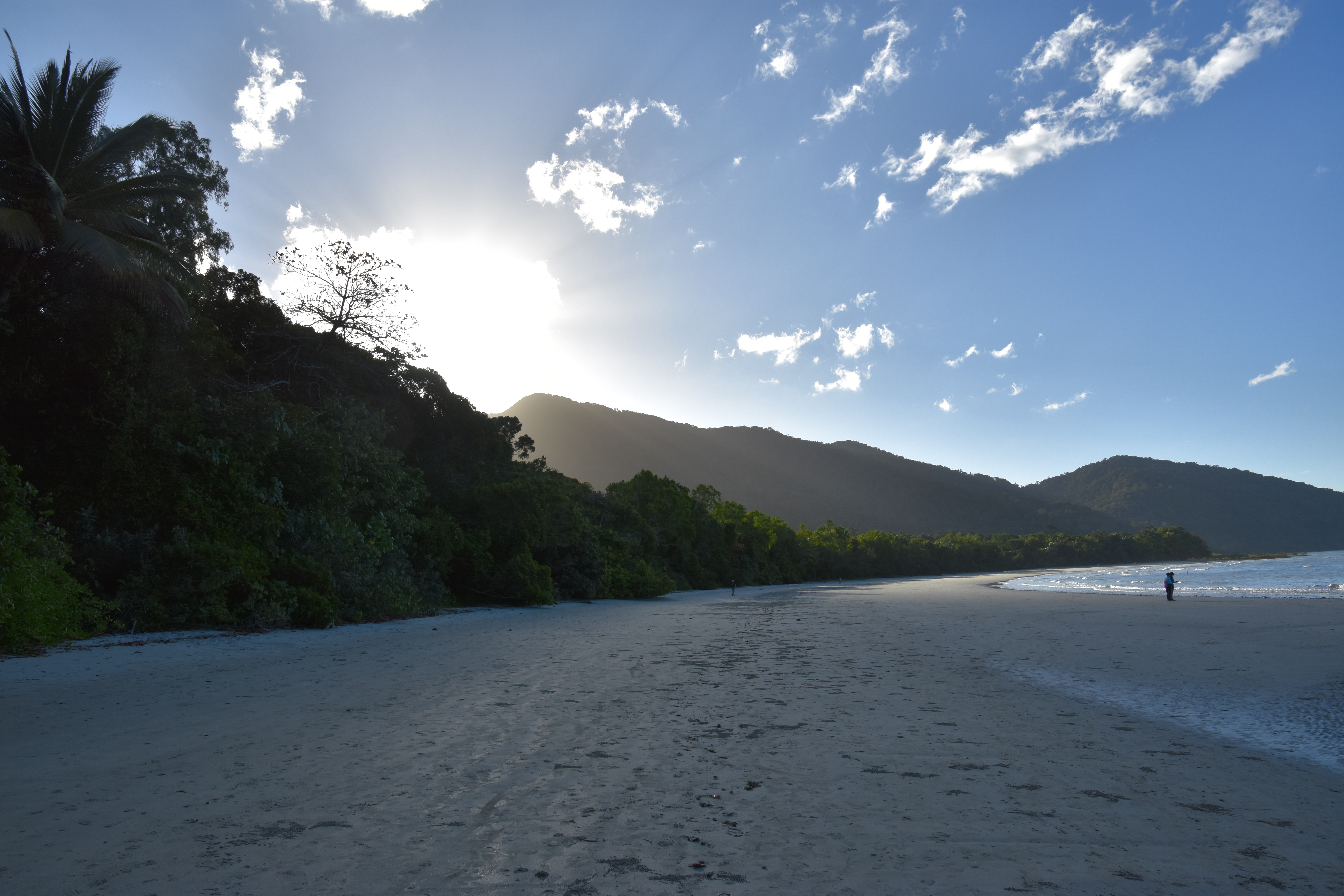 Weiter gings dann zum Cape Tribulation, die Sonne stand schon tief über den Bäumen und so verweilten wir nicht lange dort. Einen Vorteil hatte die späte Uhrzeit jedoch, denn die Mehrheit der anderen 100 Leute hatten sich schon früher auf den Rückweg gemacht und so hatten wir den Strand fast schon für uns alleine. Da es schon langsam dunkel wurde, machten wir uns auf den Weg zurück nach Port Douglas.