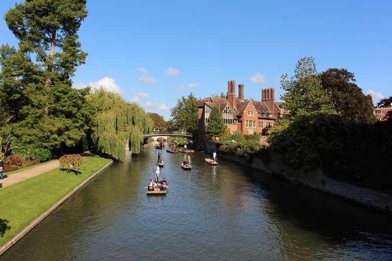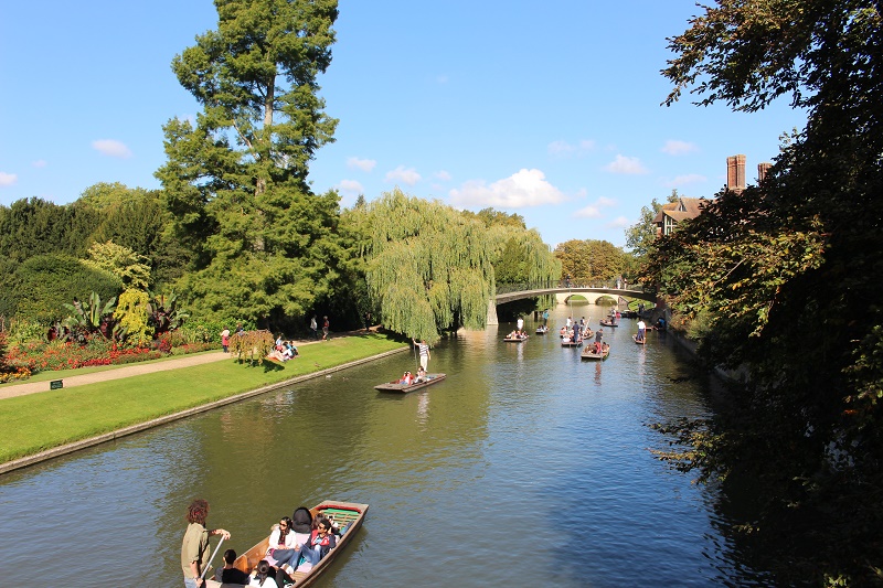 Nach dem Mittagessen trafen wir vier uns wieder. Während Céline und ich noch auf die anderen beiden warteten, sprach uns einer der vielen Studenten rund ums College an und fragte uns ob wir nicht Lust hätten, mit ihm „Punten“ zu gehen. Punting ist eine Bootsfahrt mit einem Guide, der dich mit einem langen Stab den Fluss hinaufbringt, ähnlich wie in Venedig. Überall dort wo es viele Touristen hat, trifft man viele Studenten an, die Punting für ein bisschen Taschengeld anbieten.