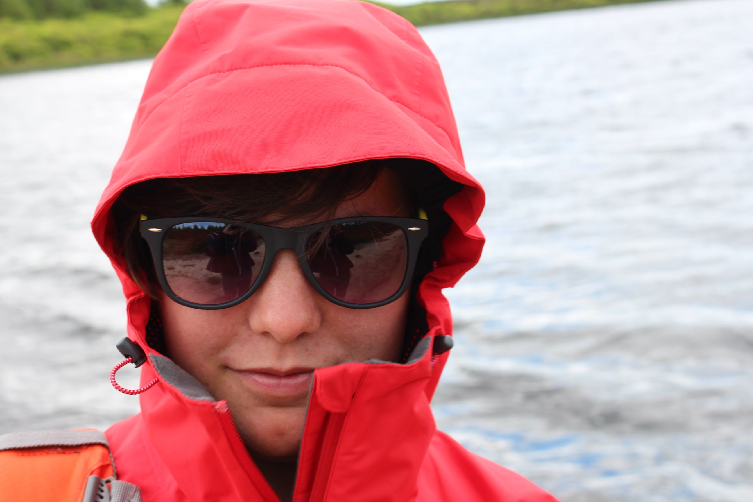 Als wir wieder sicheren Boden unter den Füssen hatten, genossen wir unseren persönlichen Sandstrand. Naja, Strand ist etwas viel gesagt, vielmehr war es eher ein Sandfleck. Doch die Sonne schien und die Wellen schwappten über unsere Gummistiefel und wir waren rundum zufrieden. Irgendeinmal beschlossen wir zurückzugehen und Fabian und ich paddelten zurück zur Anlegestelle während Mami und Papi den See zu Fuss umrundeten.