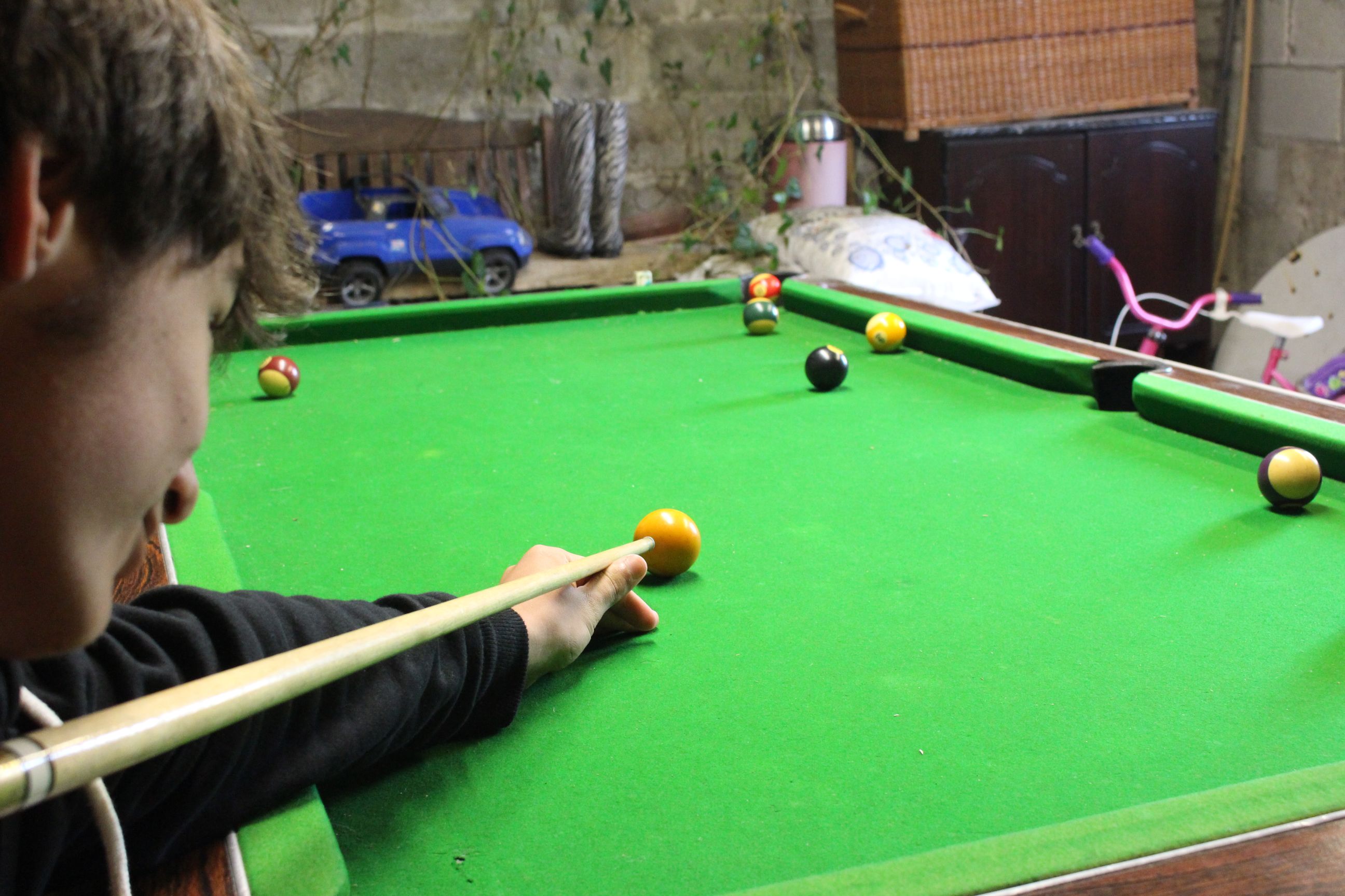 Als ich heute Morgen wach wurde, war es schon nach 10.00 Uhr. Fabian schlief noch und Mami und Papi machten sich gerade auf ins Dorf um Frühstück einzukaufen. Ich las mein Buch zu Ende und ging anschliessend duschen. Um ca. 12.00 Uhr gab es dann ein spätes Frühstück und anschliessend spielten wir ein paar Runden Billiard. Da weder Fabian noch ich gross Lust hatten heute wegzugehen, gingen Mami und Papi am Nachmittag alleine auf unterwegs.