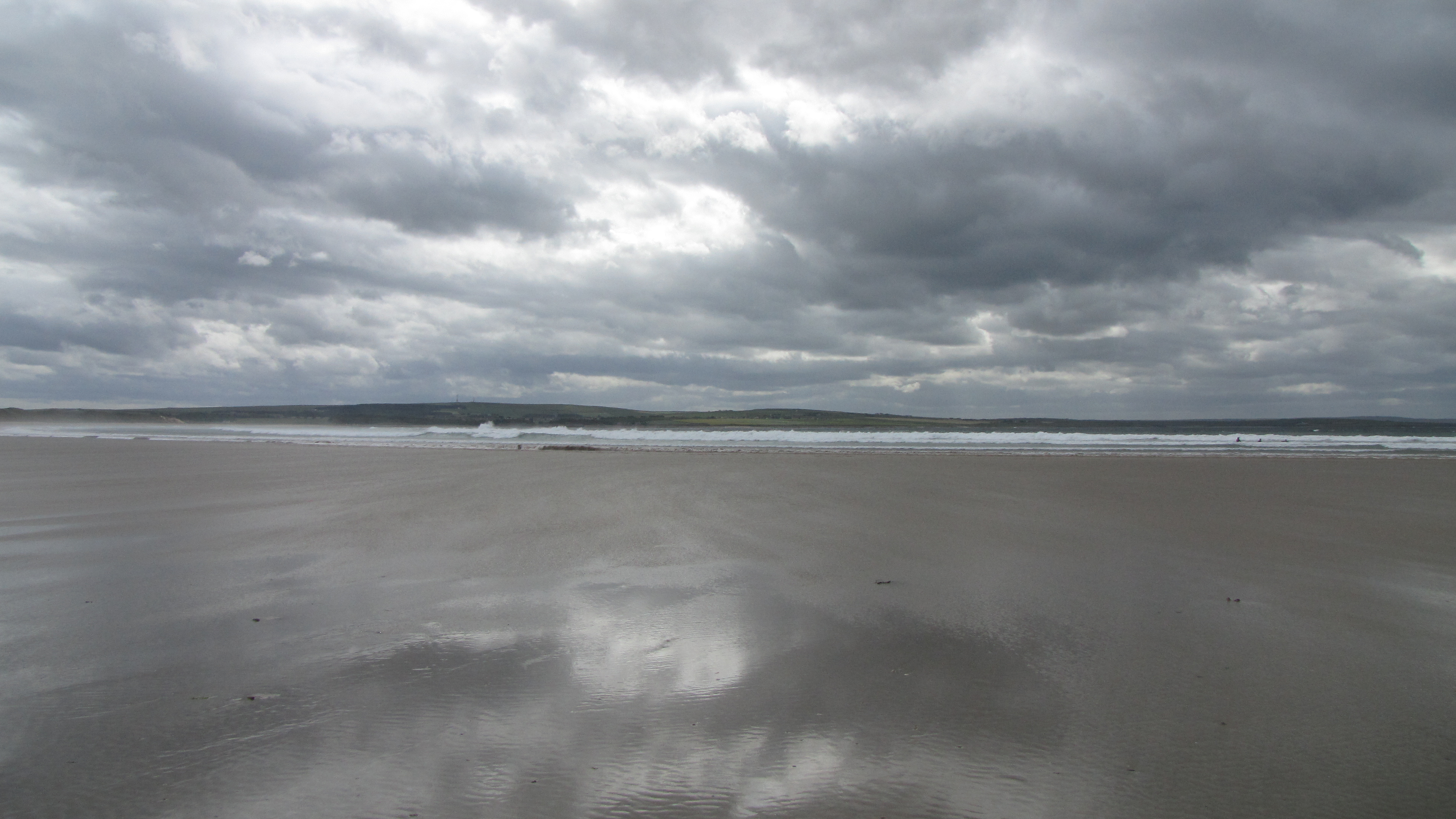 Nachher spazierten wir weiter zum Meer. Das war aber ein kleiner Reinfall, denn leider war gerade Ebbe und das Meer nicht zu sehen. Ausserdem gab es auch keinen Strand zu sehen. Deshalb stärkten wir uns nur an den mitgebrachten Sachen und liefen zum Auto zurück. Auf dem Rückweg hatten wir noch einen seltsamen Zusammenstoss mit einem hartnäckigen Fliegenschwarm, die beharrlich um unsere Köpfe schwirrten. Beim Auto angekommen, fuhren auf der Suche nach einem Sandstrand herum.