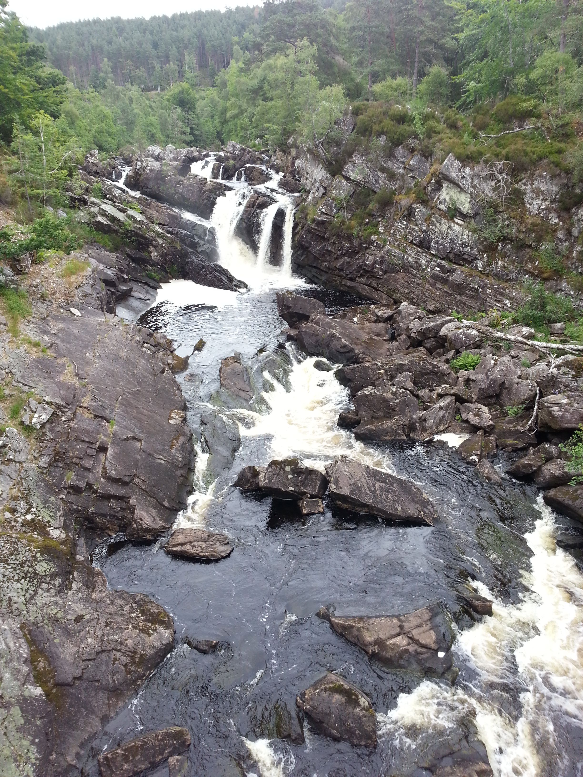 Unterwegs hielten wir bei den Rogiefalls, wo wir von einer Hängebrücke aus nicht nur die Fals sahen, sondern auch Lachse, die aus dem Wasser sprangen.
